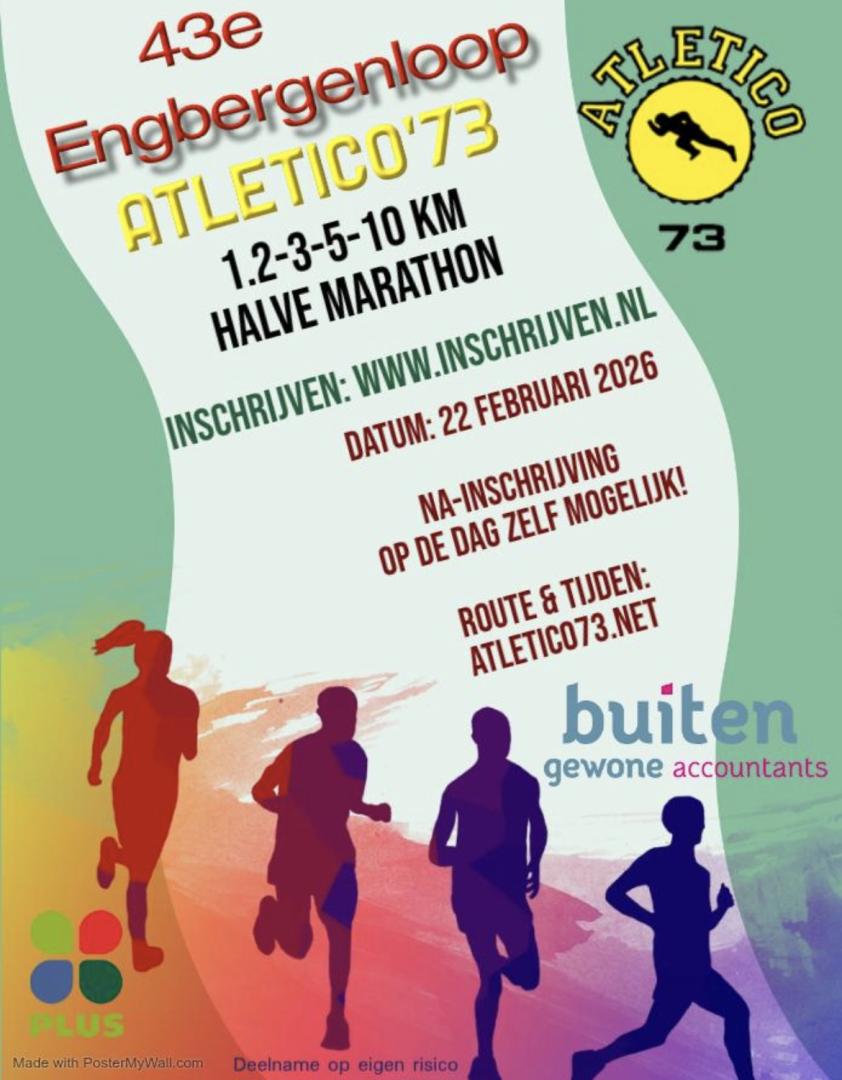 Zondag 22 februari vindt de 43e Engbergenloop plaats. De start en finish zijn op locatie van Atletico '73 (waalstraat 5 Gendringen).